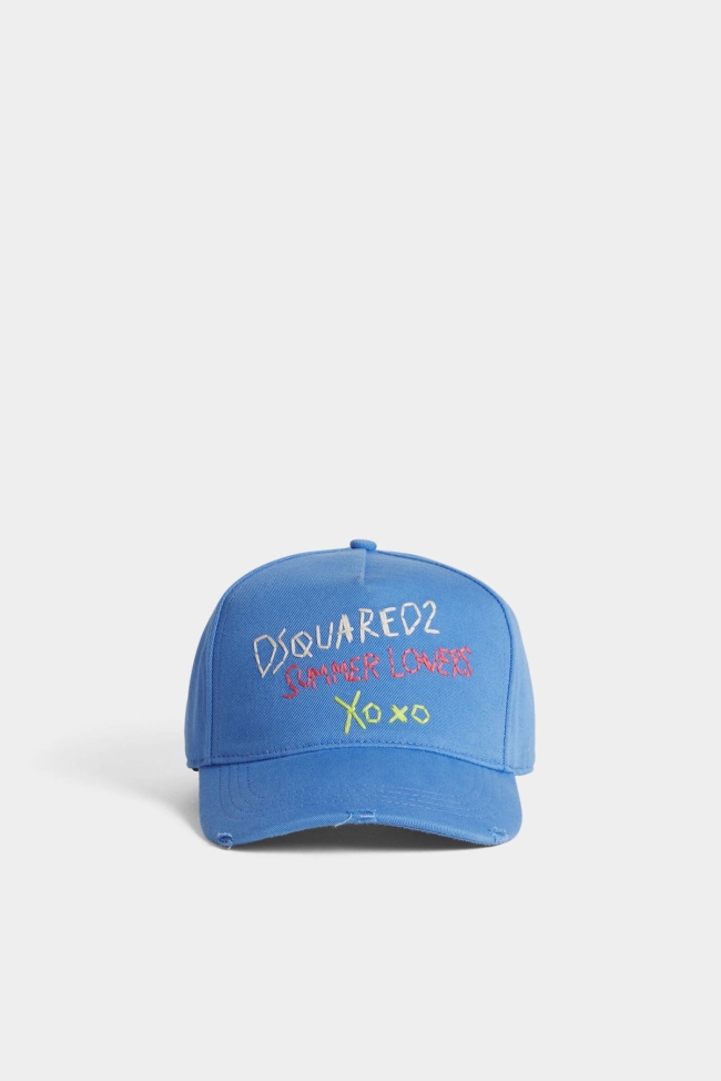Live your best life in this cotton baseball cap, bringing laid-back attitude to any summer 'fit. Toughened up with distressed detailing on the peak, it's delicately embroidered with "DSQUARED2 SUMMER LOVERS XOXO" lettering.