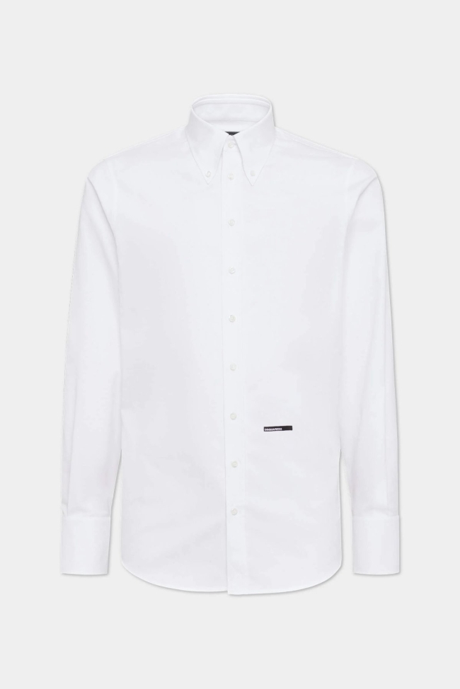 Detailed with single-button, beveled cuffs and adorned by a discreet designer logo— a black rectangular accent with distinctive white DSQUARED2 lettering — this shirt exudes understated confidence. Its exquisite material and thoughtful tailoring make it an indispensable element in any sophisticated wardrobe.