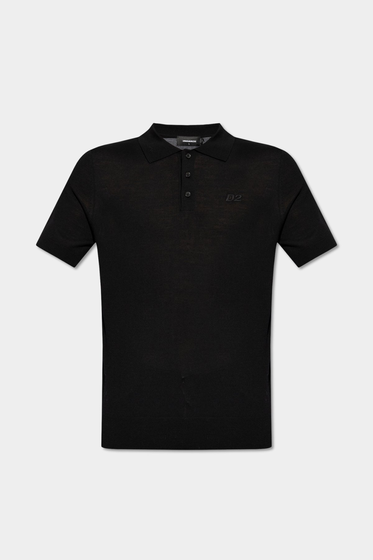 Black polo shirt from Dsquared2. Made of wool, this short sleeve design features buttons and ribbed trims at the collar and cuffs.