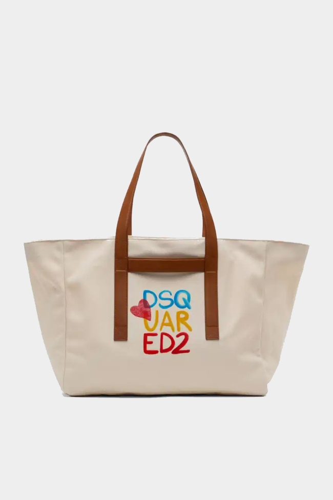 The Summer Lovers Shopper Bag by Dsquared2 exudes a captivating blend of artistry and casual charm, mirroring the unique vision of designers Dan and Dean Caten. This rectangular shopper bag embodies both elegance and functionality with its wide sides, providing ample capacity for your essentials.